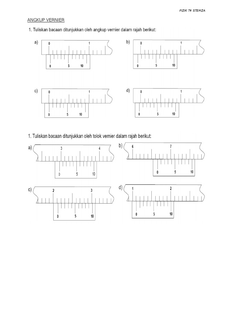 0%0% found this document useful, mark this document as useful. Ada trik khusus yang bisa digunakan untuk membaca. Calliper vernier modern ditemukan oleh joseph r. Jangka sorong (vernier caliper) adalah suatu alat ukur panjang yang dapat digunakan untuk mengukur panjang suatu benda dengan ketelitian hingga 0,1 mm. Angkup vernier mempunyai tahap jitu bacaan yang lebih, tetapi mempunyai had gunaan kepada saiz ia tidak boleh digunakan untuk membaca ukuran garis pusat paip yang besar.