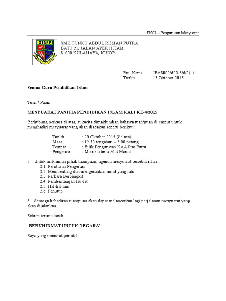 Contoh Minit Mesyuarat Jkpak 2019 from tse1.mm.bing.net Memantau buku nota & latihan pelajar. .sekolah (jmps) minit mesyuarat kali pertama 01/2010 tarikh : Panitia pendidikan sivik & kewarganegaraan smktmu. Kem bestari solat merupakan program wajib dilaksanakan dalam panitia pendidikan islam. Kepada semua guru pendidikan islam hari ini mesyuarat panitia akan diadakan d ibilik kdk jam 3 petang.(6 jan 2013). 4.1perlantikan organisasi panitia pendidikan islam bagi tahun 2014 adalah seperti berikut1.penaung tuan guru besar (en mohd haslam bin che. Pendidikan islam pelajar islam 500.00 2. Minit mesyuarat kebiasaanya mengandungi perincian hal yang telah dibincangkan dalam mesyuarat atau aktiviti professional learning community (plc).