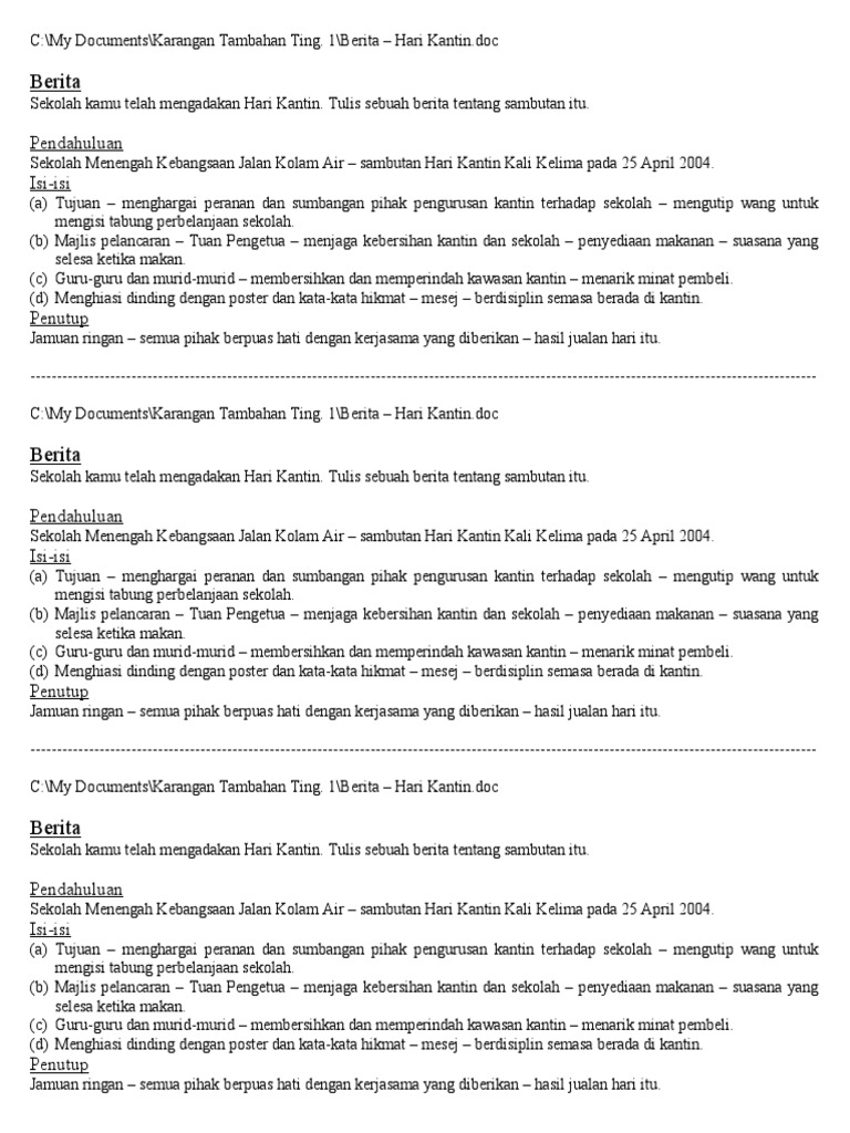 Lagu negaraku, lagu negeri dan lagu rasmi sekolah dinyanyikan dengan penuh semangat.kemudian, bacaan doa dibacakan oleh. Karangan contoh upsr berita sambutan hari kemerdekaan di sekolah kamu. Sekolah kamu telah mengadakan hari penyampaian hadiah. .الماضيsekolah saya telah mengadakan sambutan hari kemerdekaan pada minggu lepasمن أهداف. Tiada lagi lemang di pagi sambutan hari raya.
